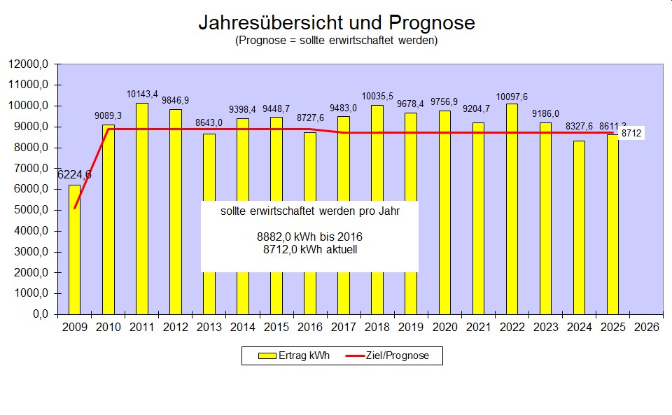 • 06.06.2010 nach knapp mehr als einem Jahr sind 10 000 kWh Sonne eingefangen